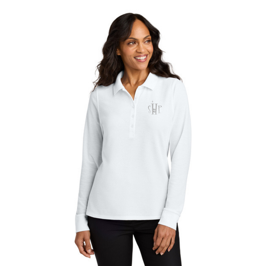 WOMEN'S Port Authority Long Sleeve Polo (WHITE)