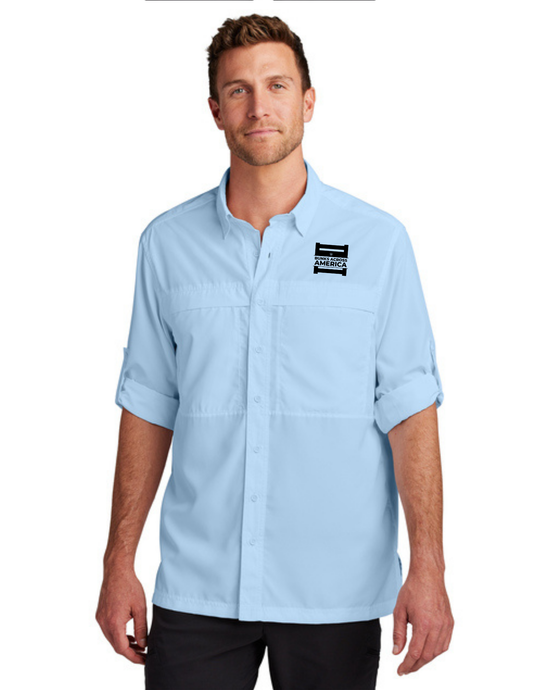 BAA 2025 - MEN'S UV Daybreak Shirt Long Sleeve w/ Embroidery - "Official BAA Logo" (LIGHT BLUE)