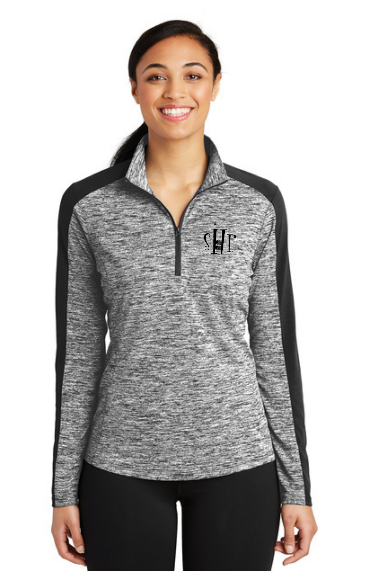 WOMEN'S 1/4 Zip Pullover (BLACK ELECTRIC/BLACK) - "SHP" LOGO